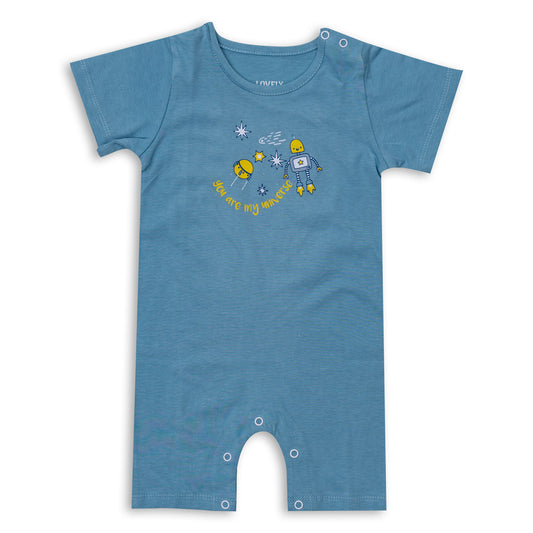 Soft baby romper with cute space print and snap buttons.
