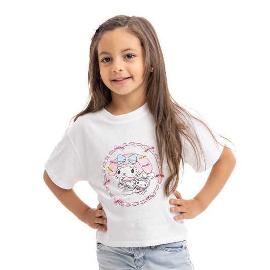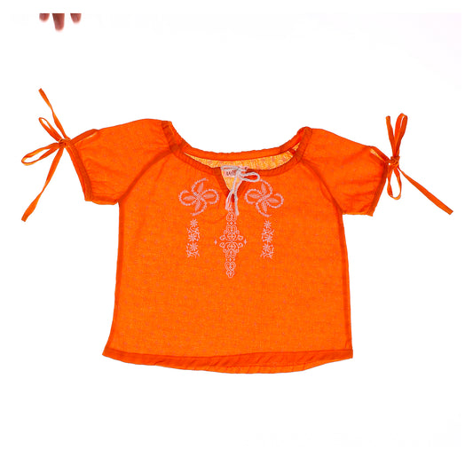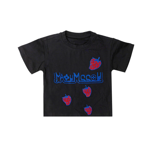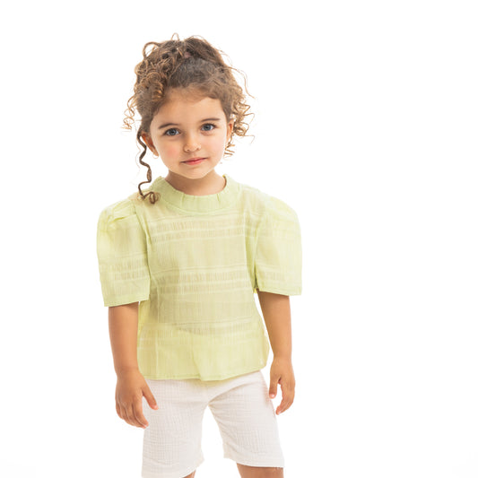 set of lemon yeloow shirt with flower decorations with blue short with flower decorations