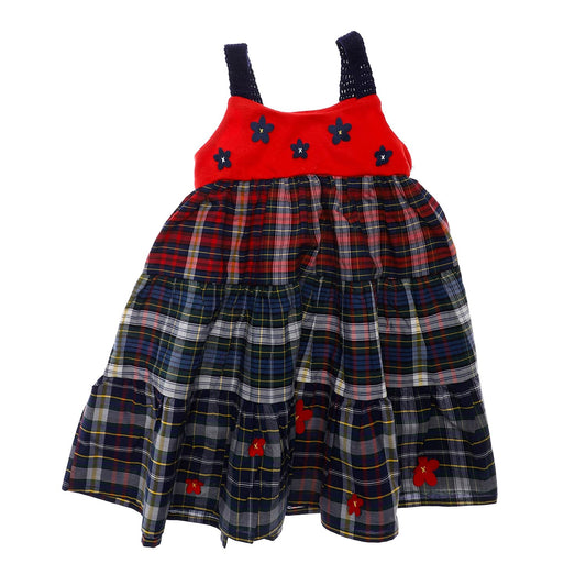 Tiered Checkered orange& White Sleeveless Girls Dress