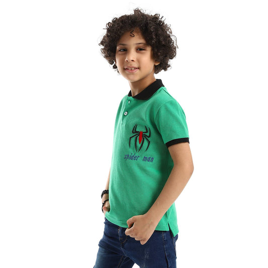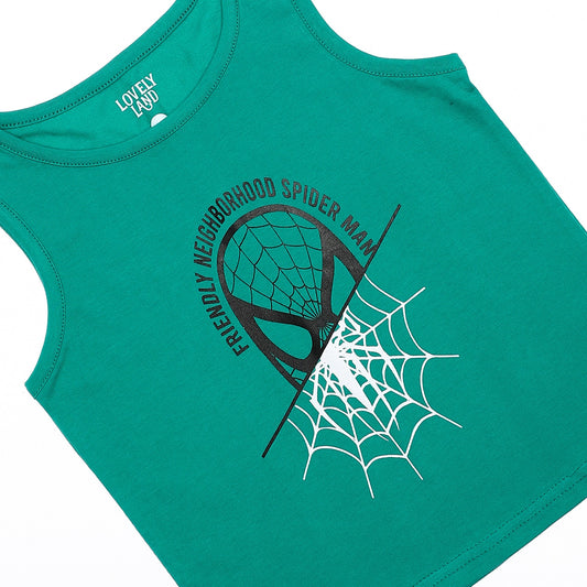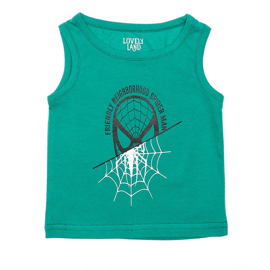 Slip On Sleeveless Printed Spiderman Green, White & Black Baby Boys Tee