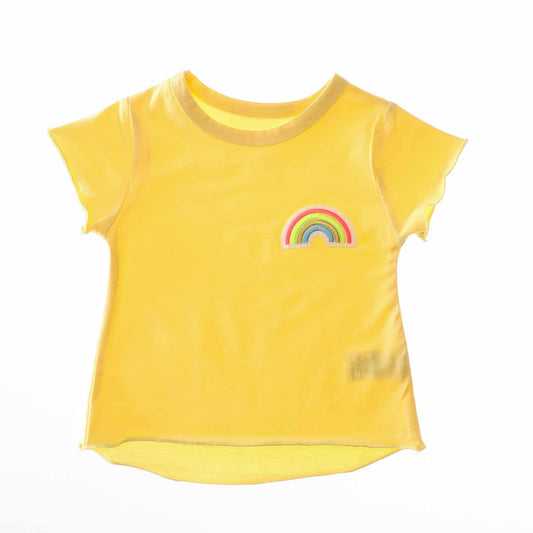 Rainbow Stitched Baby Girl Yellow Tee