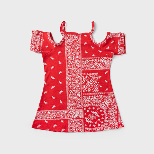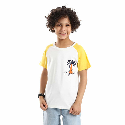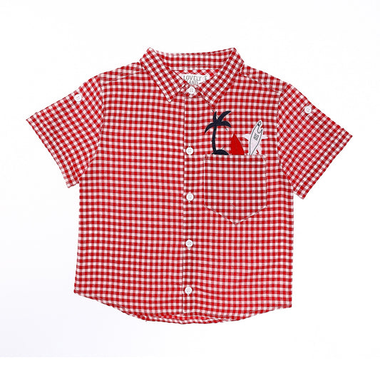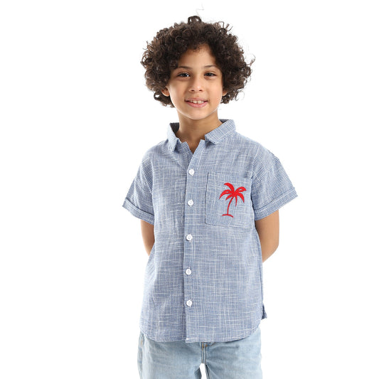 Red Stitched Palm Tree Over Blue & White Boys Shirt