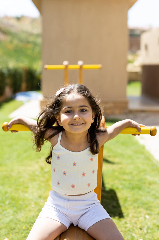sleeveless light blue shirt with print and light blue short