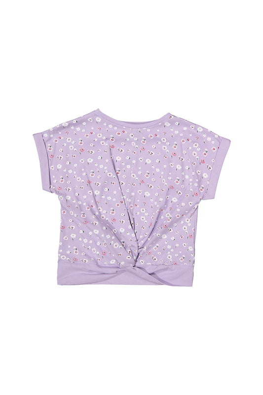 purple half sleeve shirt with flower print