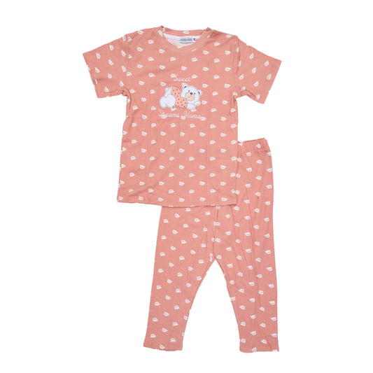 Cute simon-colored pajama set with a teddy bear print, comfy and perfect for bedtime.