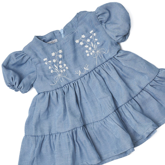 girl's dress with floral embroidery on the chest