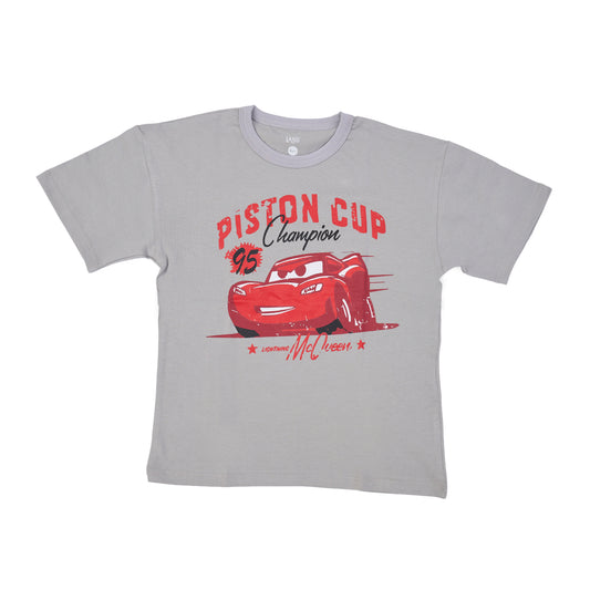 short sleeve grey shirt with cars chest print