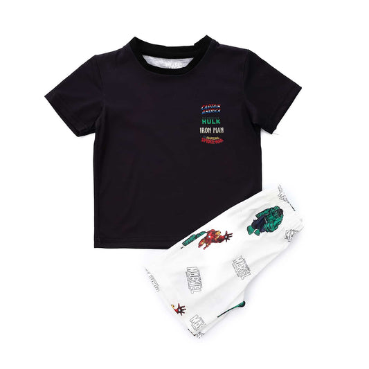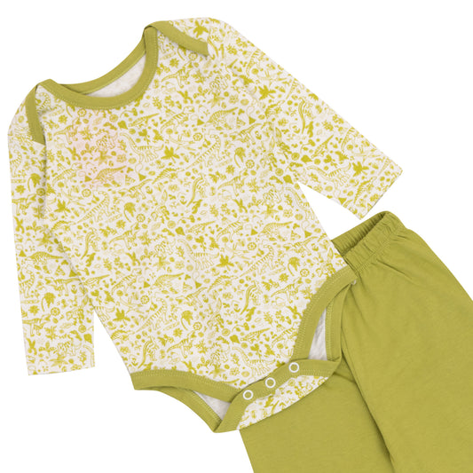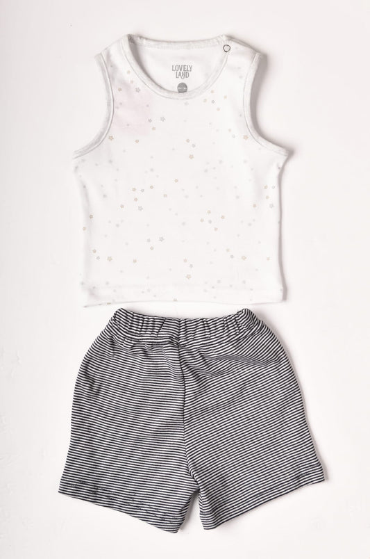 white pyjama shirt with all over print and white pants with all over printÂÂ