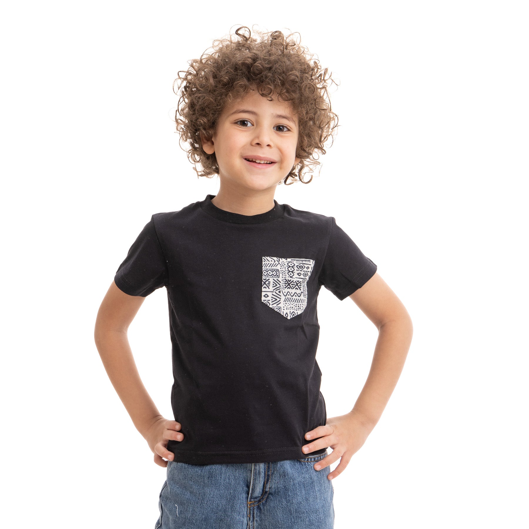 Boys' black t-shirt with a patterned pocket