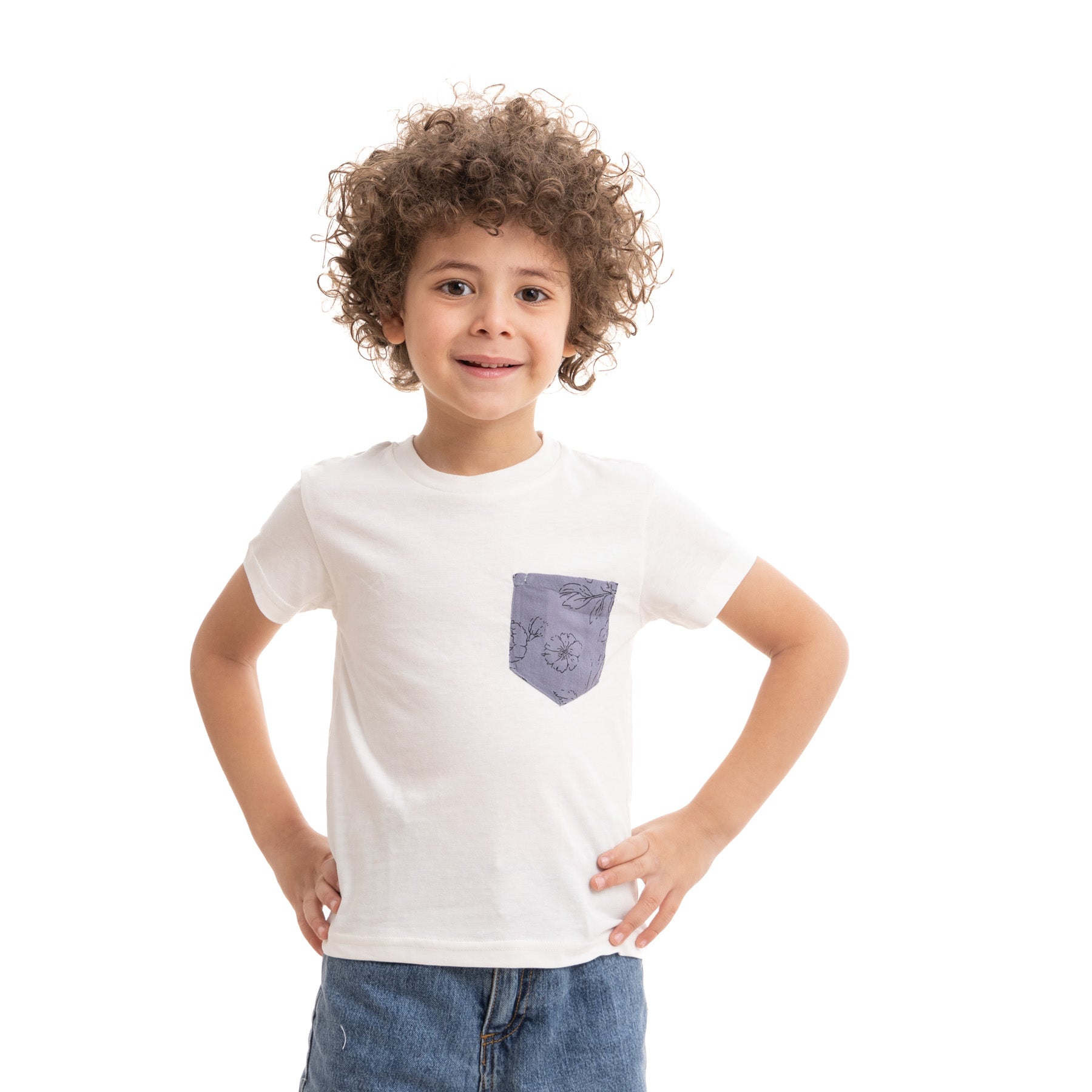 Boys' white t-shirt with a patterned pocket