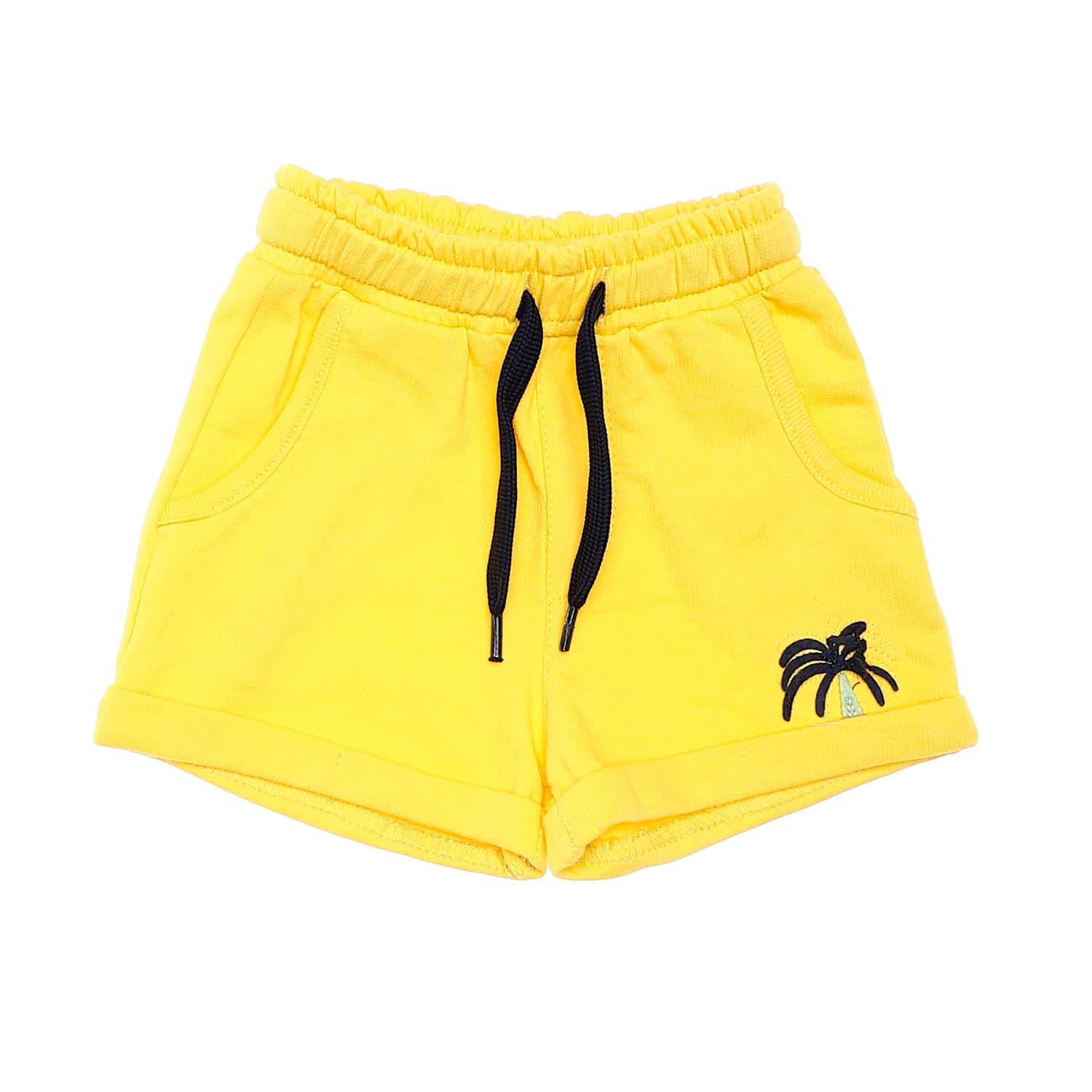 cotton yellow shorts with navy blue patched palm tree baby boys shorts