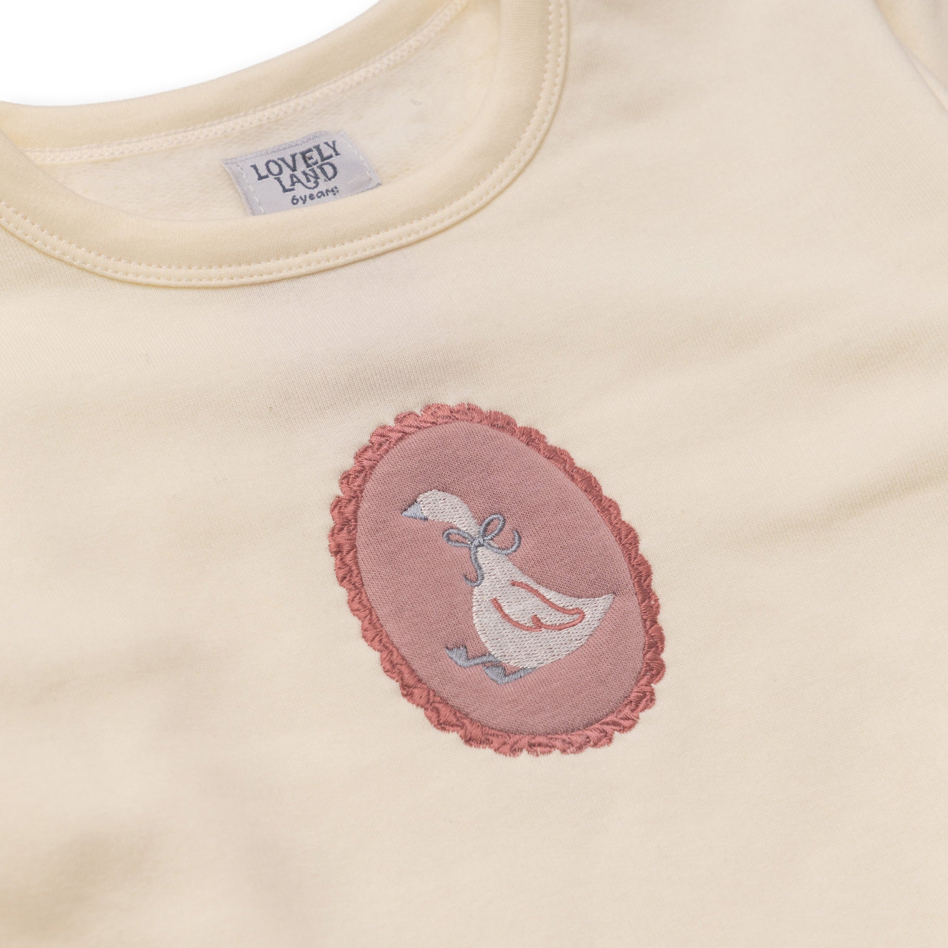 cream long sleeve shirt with chest stitching and purple pants