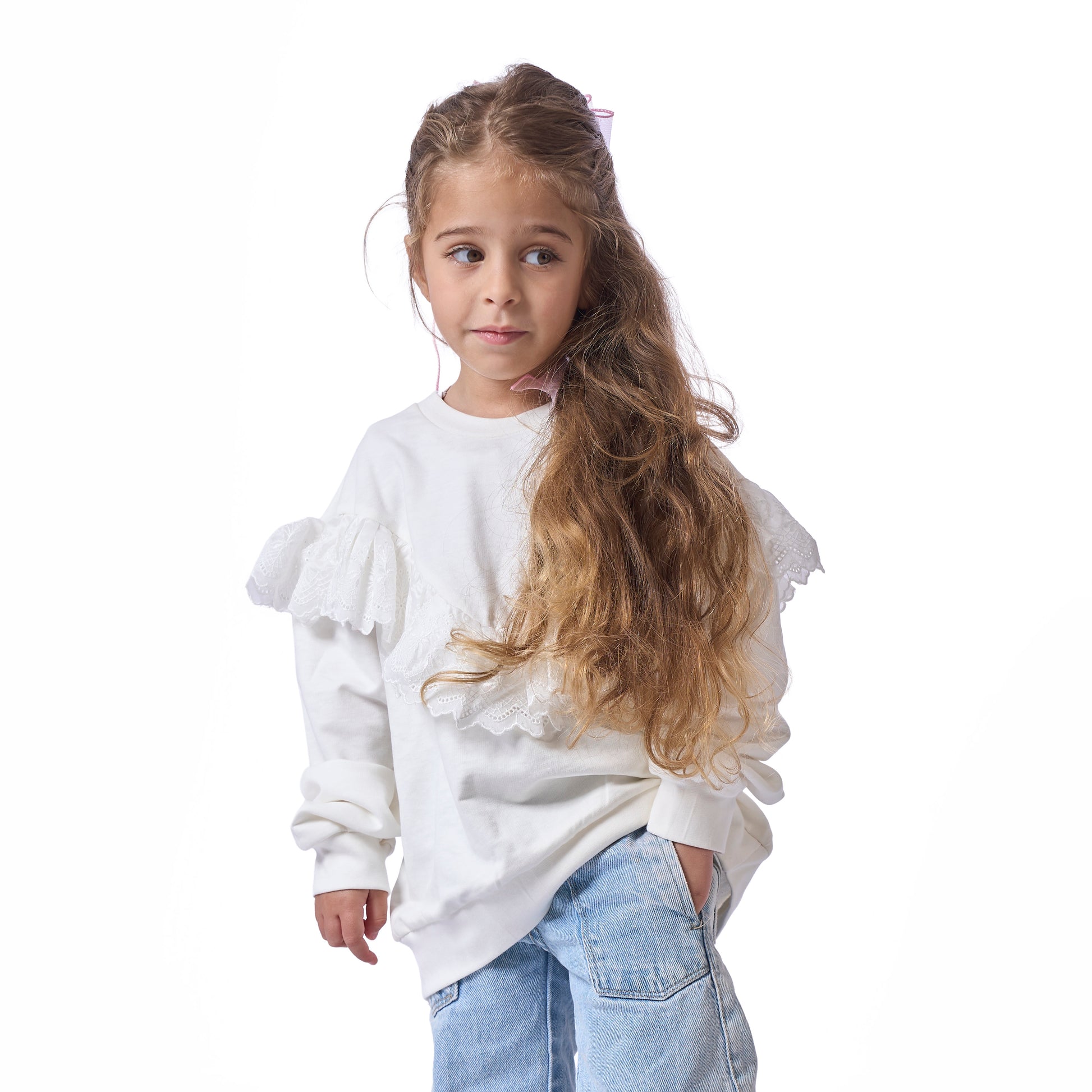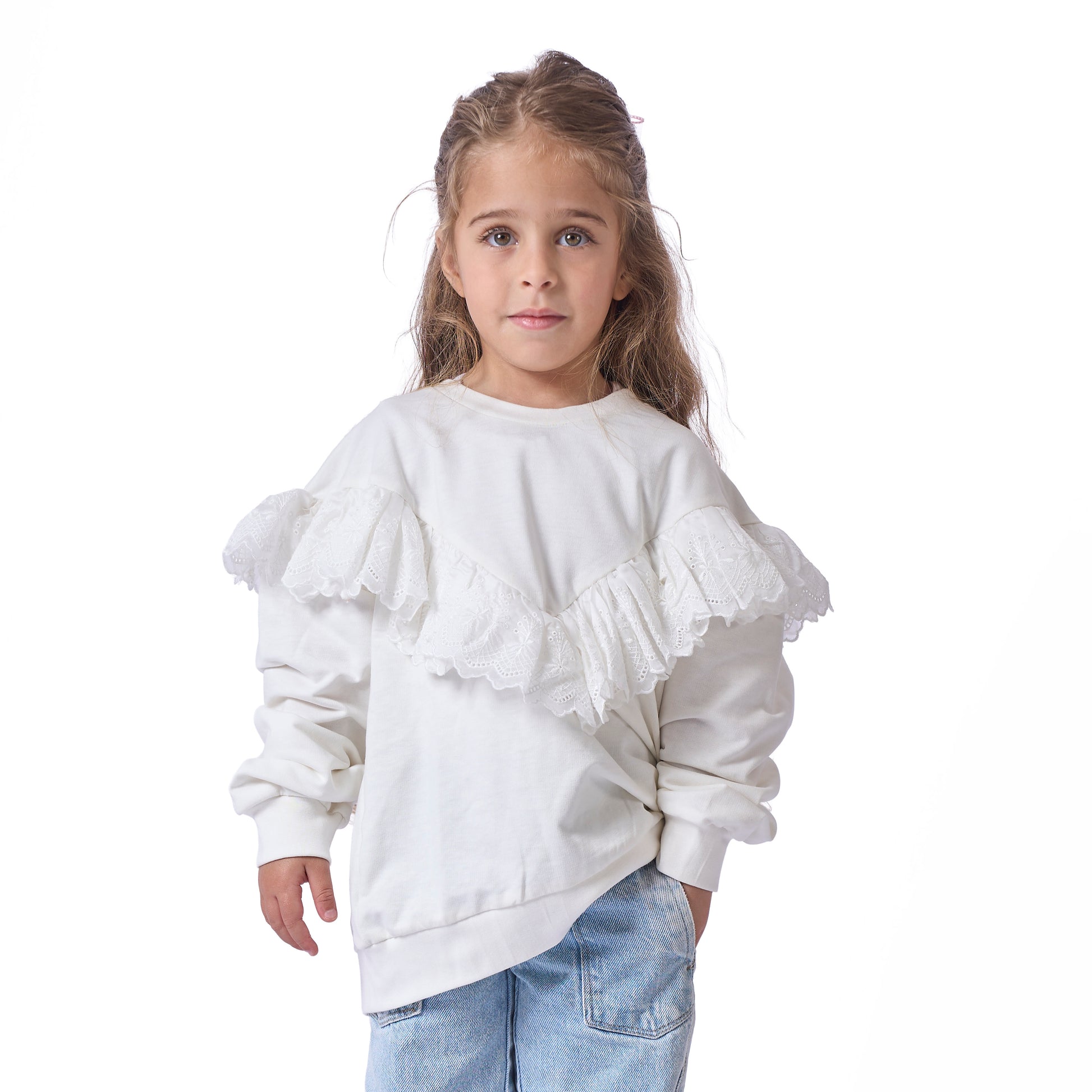 girls' blouse with ruffles on the chest