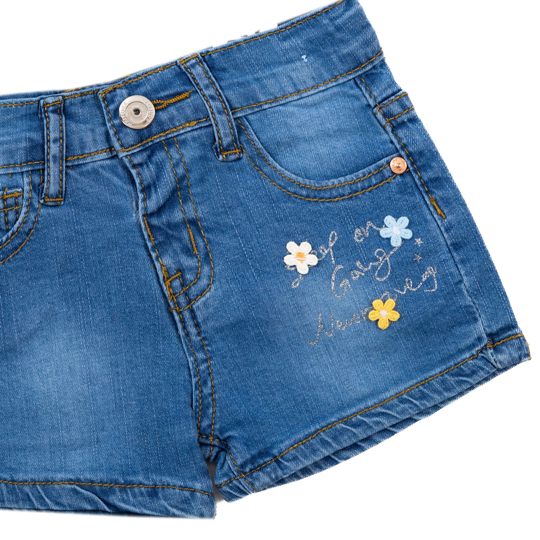 light blue jeans pants with flower stitching