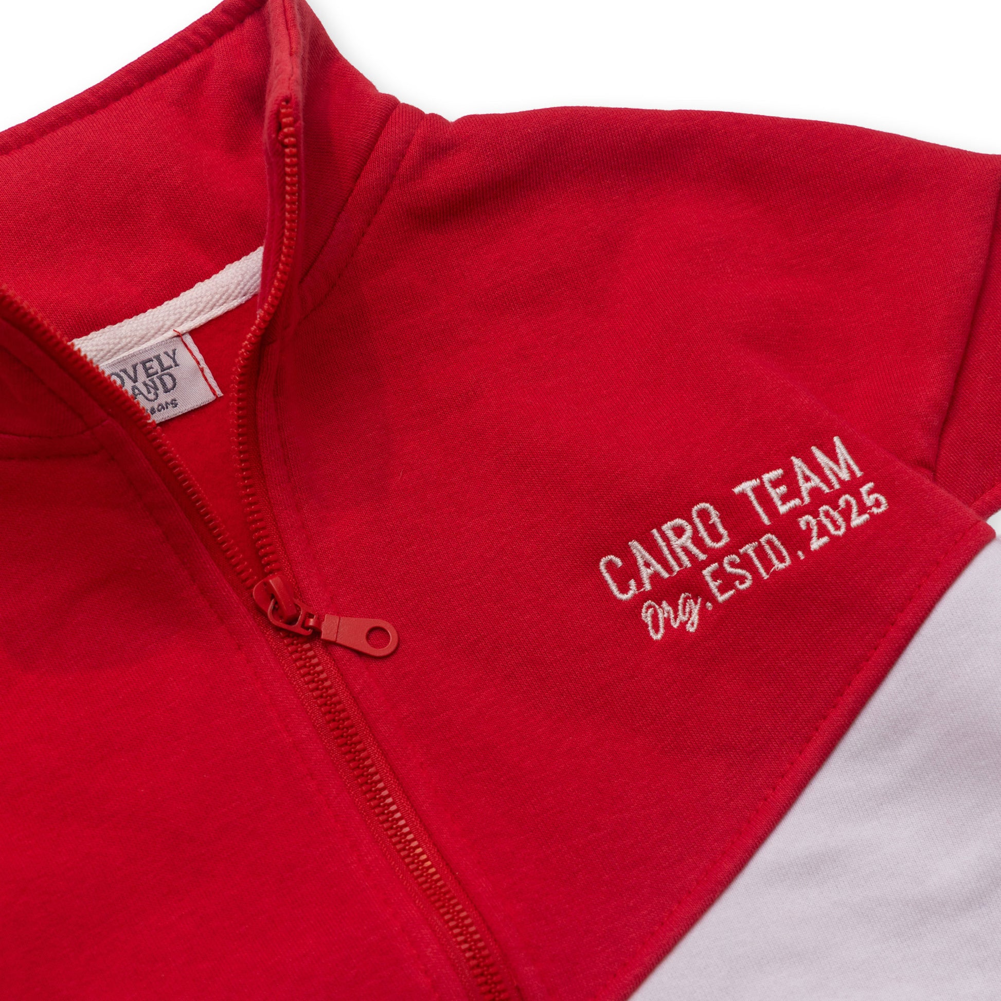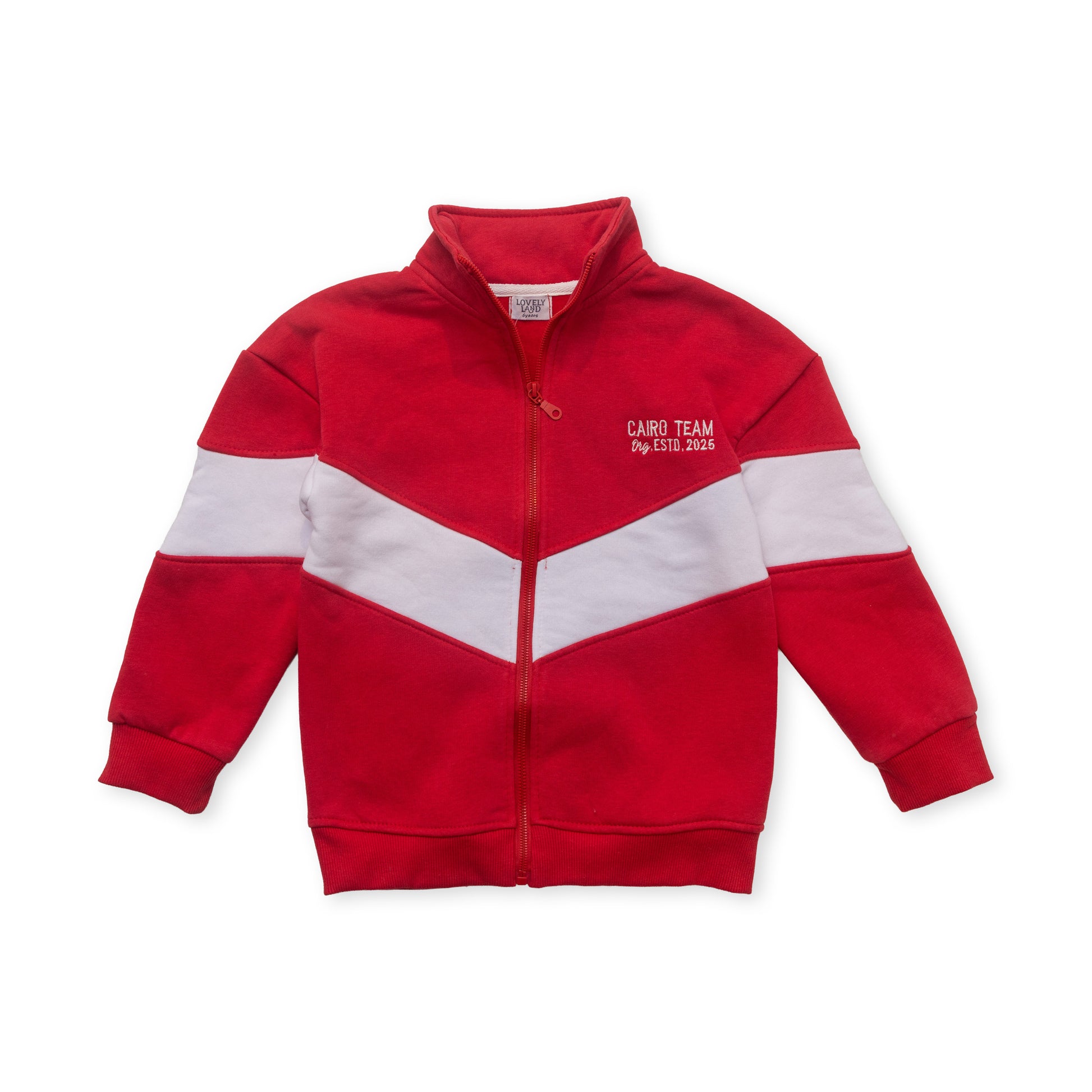 red and white long sleeve jacket