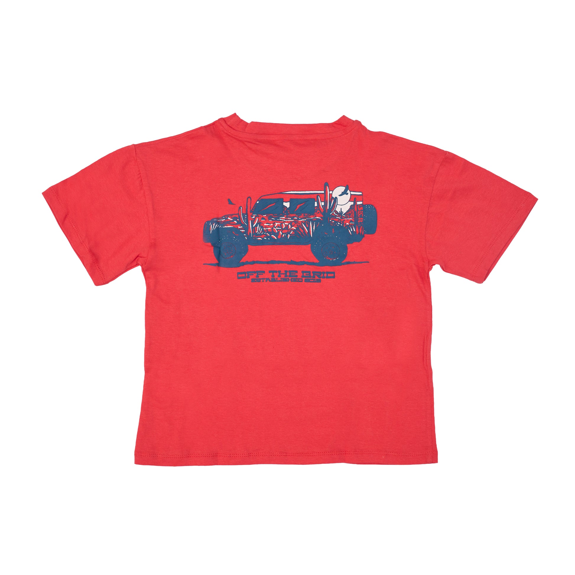 Red short sleeve shirt with blue chest print